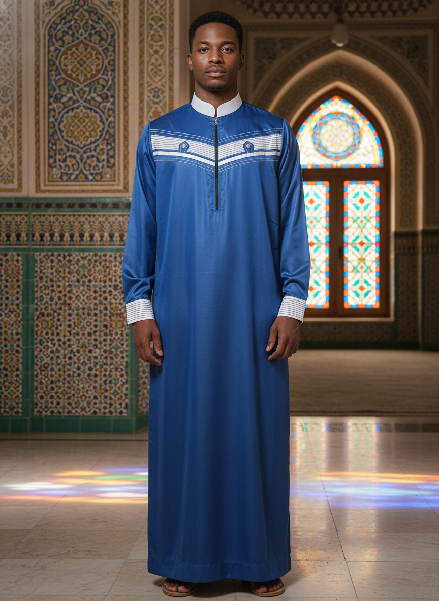 Designed for today’s Muslim professional, this Formal Men’s Jubbah combines traditional modesty with a refined, modern silhouette.