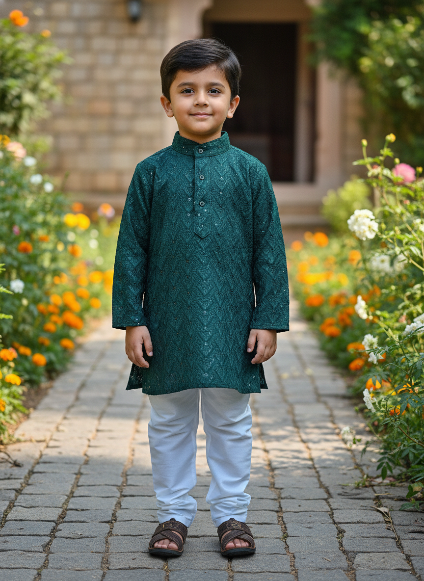Boys Stylish Kurta-Pajama Set(Size-20-Green)