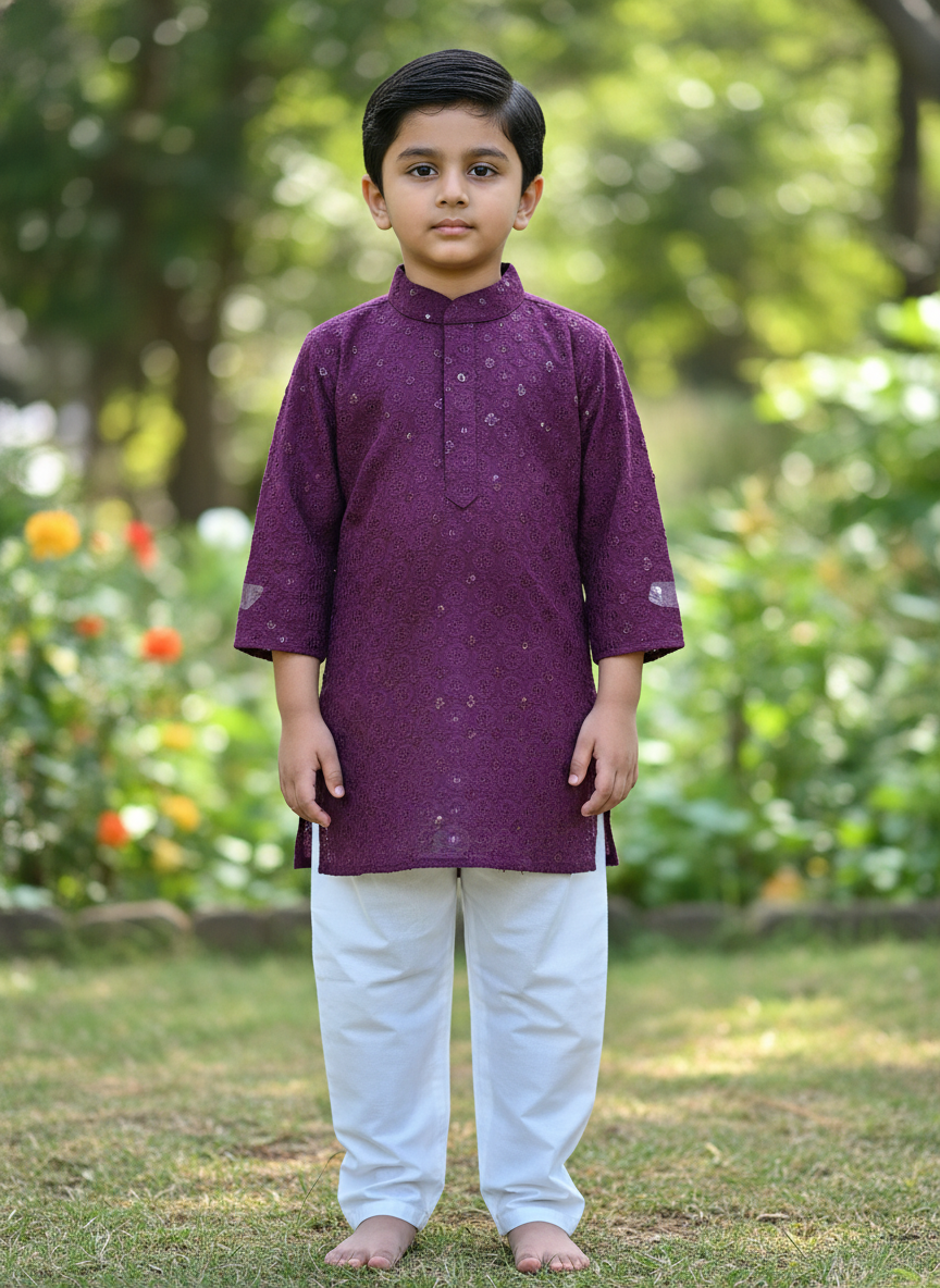Boys Stylish Kurta-Pajama Set(Size-24-Purple)