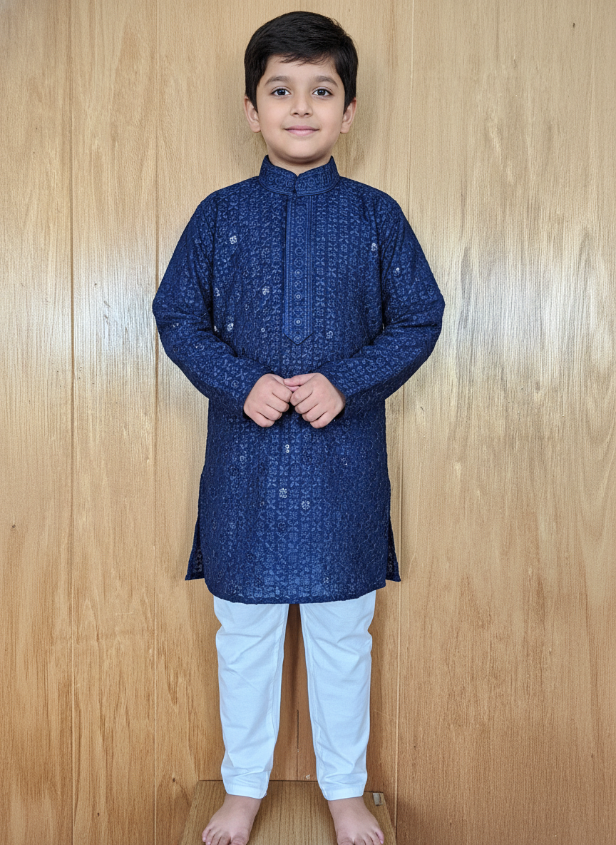 Dress your little one in timeless ethnic style with this Boys Pathani Kurta Pajama Set. Crafted from soft, breathable fabric, this outfit ensures all-day comfort