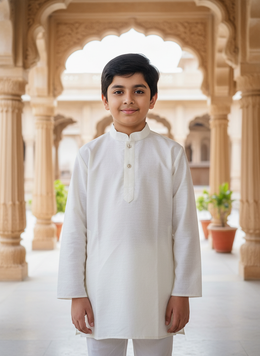 Boys Pathani Kurta Pajama Set. Crafted from soft, breathable fabric, this outfit ensures all-day comfort while maintaining a rich traditional look.