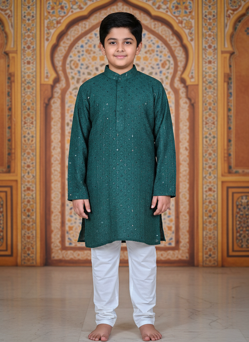 Boys Stylish Kurta-Pajama Set(Size-34-Green)