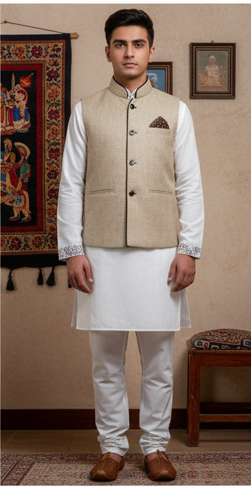 Perfectly paired with a kurta pajama, this waistcoat is ideal for weddings, festive occasions, formal gatherings, and cultural events