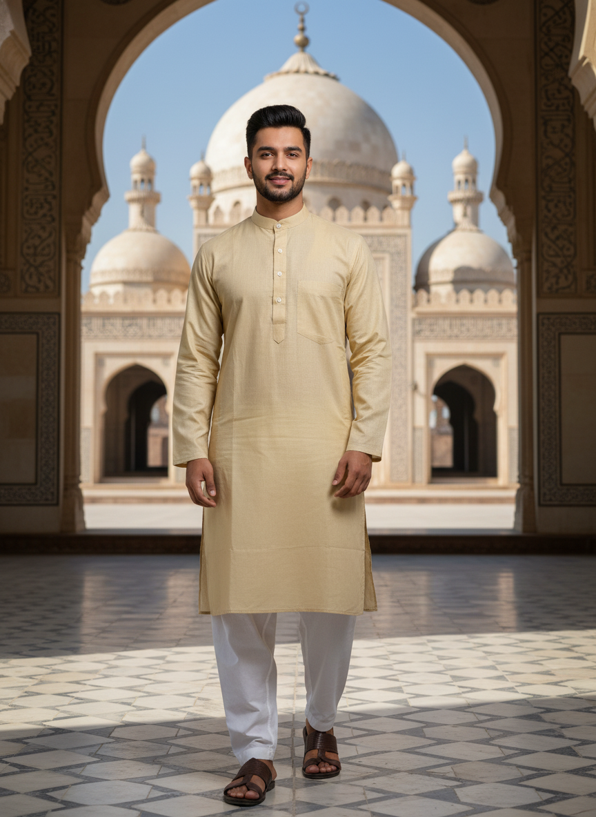 Stylish and comfortable men’s kurta, designed for both traditional occasions and casual wear. Crafted from high-quality, breathable fabric.
