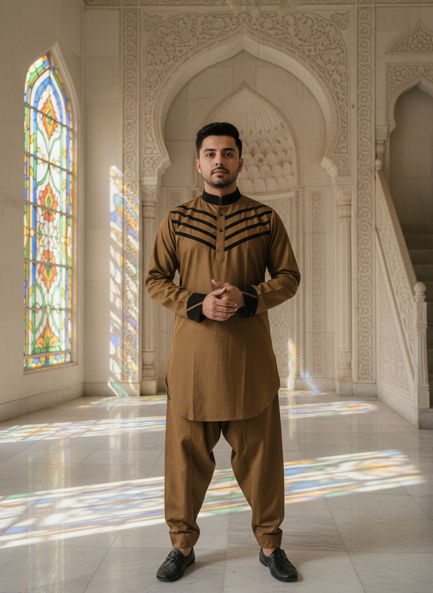 Upgrade your ethnic wardrobe with this stylish and comfortable men’s Pathani Kurata with Shalwar, designed for both traditional occasions and casual wear. Crafted from high-quality, breathable fabric.