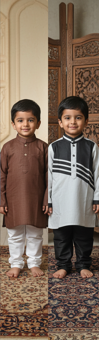 Dress your little one in this elegant traditional Pathani/Kurta and Pajama set.