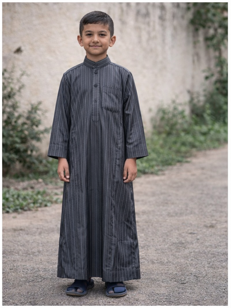 A timeless boys’ jubba designed for comfort and elegance. Crafted from lightweight, breathable fabric, this thobe features a clean silhouette with a traditional collar and buttoned neckline. Perfect for daily wear, prayer, mosque visits, and special occasions.