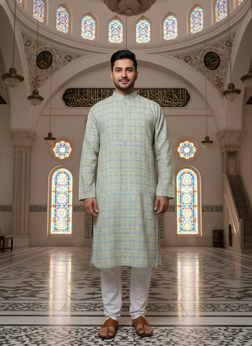 Stylish and comfortable men’s kurta, designed for both traditional occasions and casual wear. Crafted from high-quality, breathable fabric.