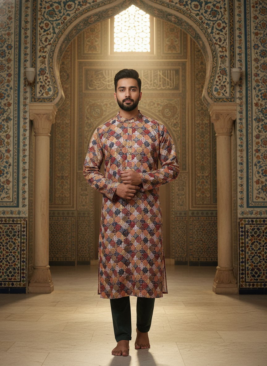 Stylish and comfortable men’s kurta, designed for both traditional occasions and casual wear. Crafted from high-quality, breathable fabric.