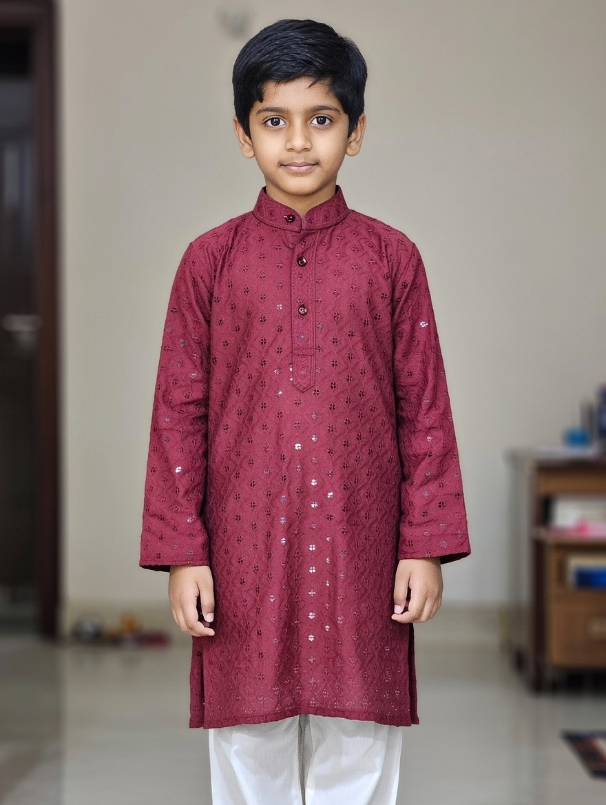 Stylish Indian Boys Kurta-Only (Size-8-Maroon)