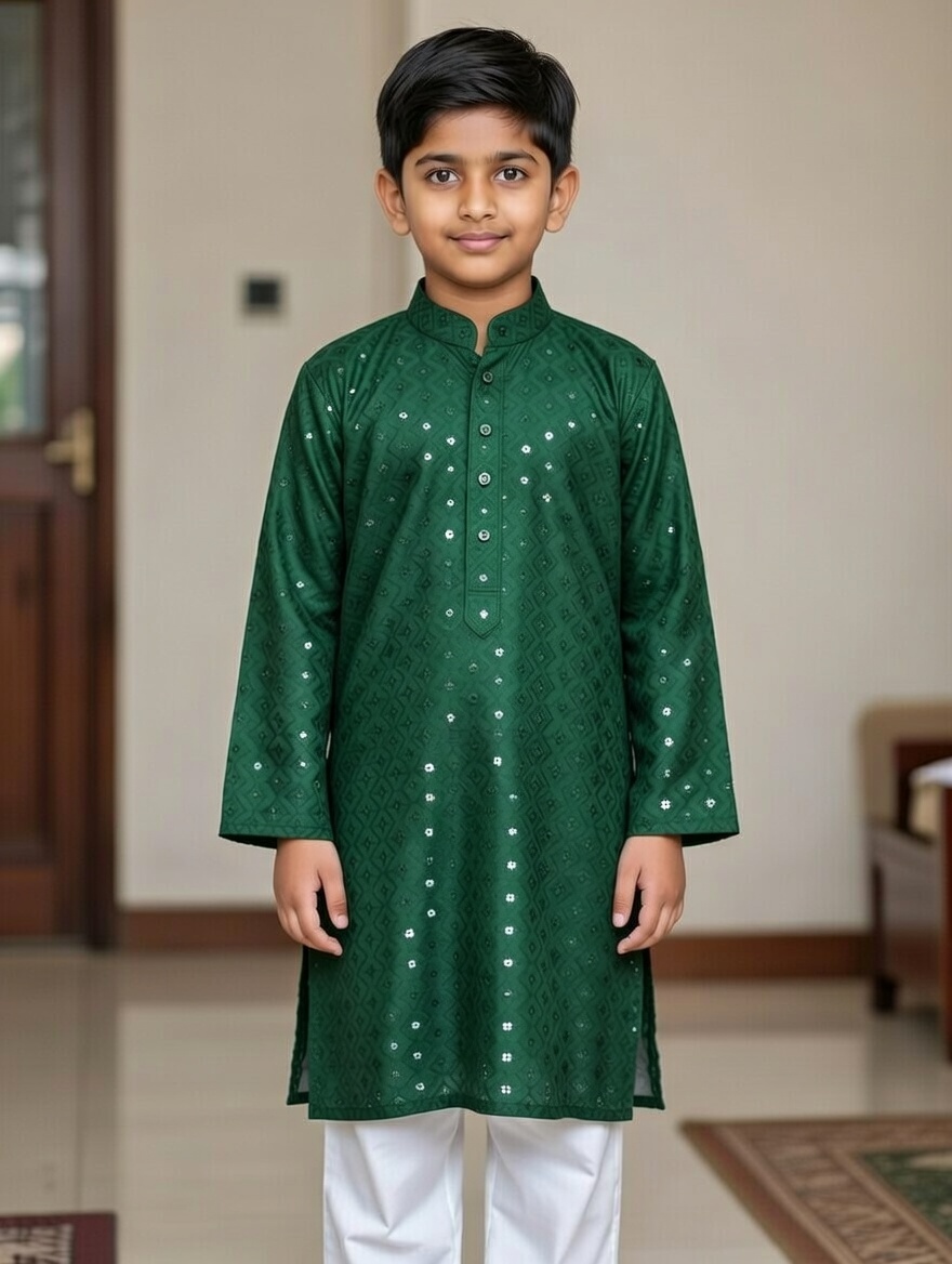 Stylish Indian Boys Kurta-Only (Size-8-Olive Green)