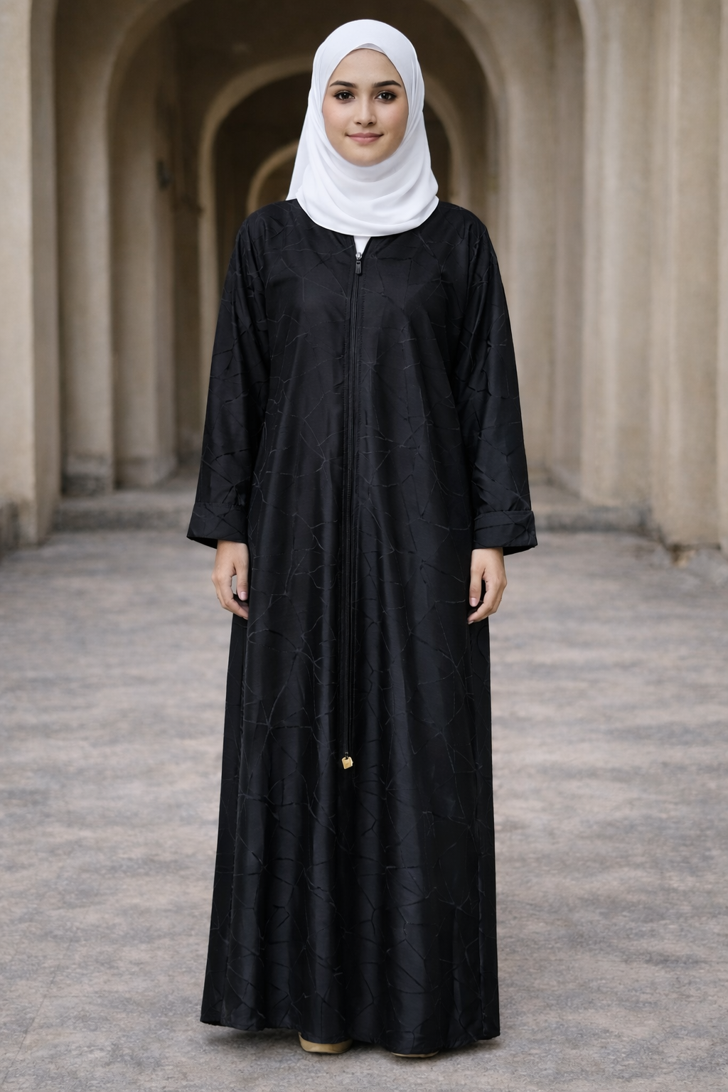 A classic abaya featuring a graceful flow and relaxed fit, ensuring ease of movement throughout the day. Its minimal design makes it a versatile addition to any modest wardrobe.