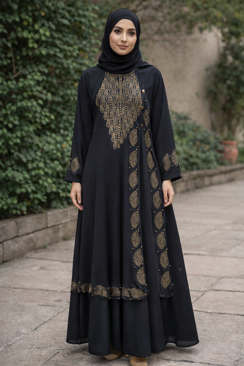 A classic abaya featuring a graceful flow and relaxed fit, ensuring ease of movement throughout the day. Its minimal design makes it a versatile addition to any modest wardrobe.